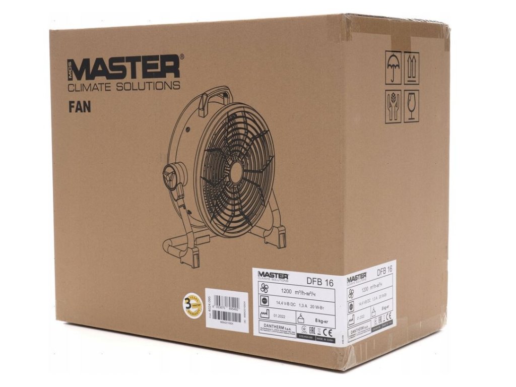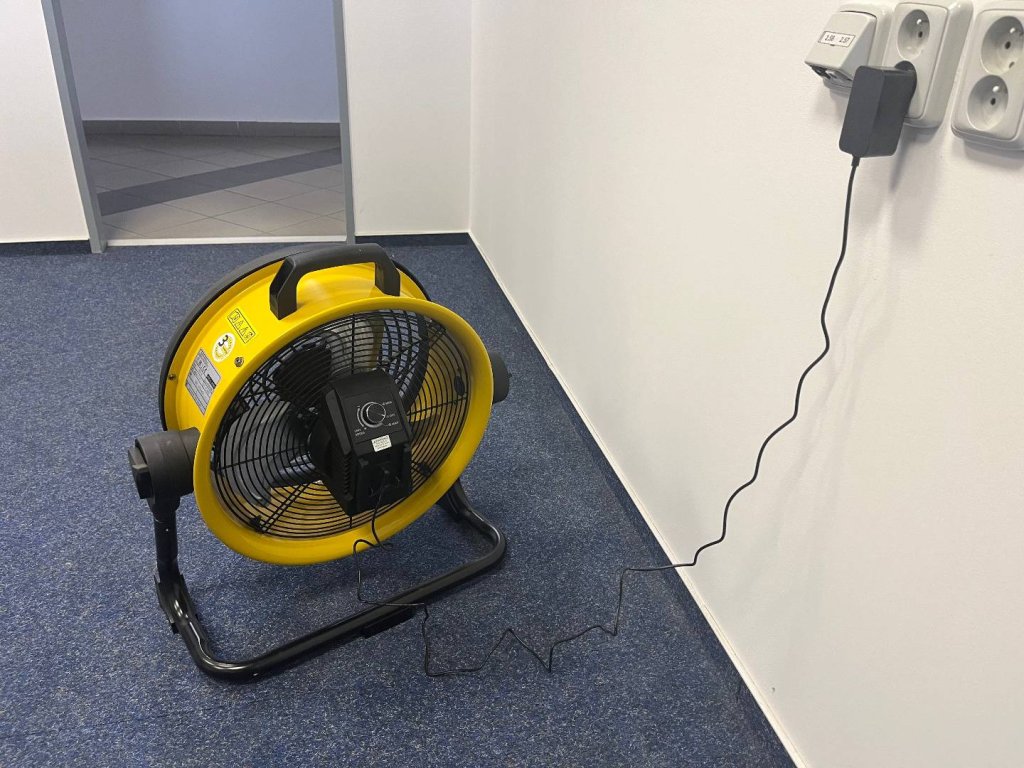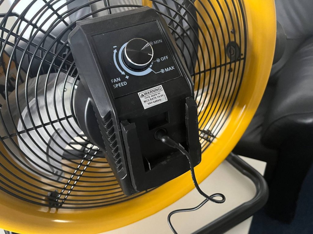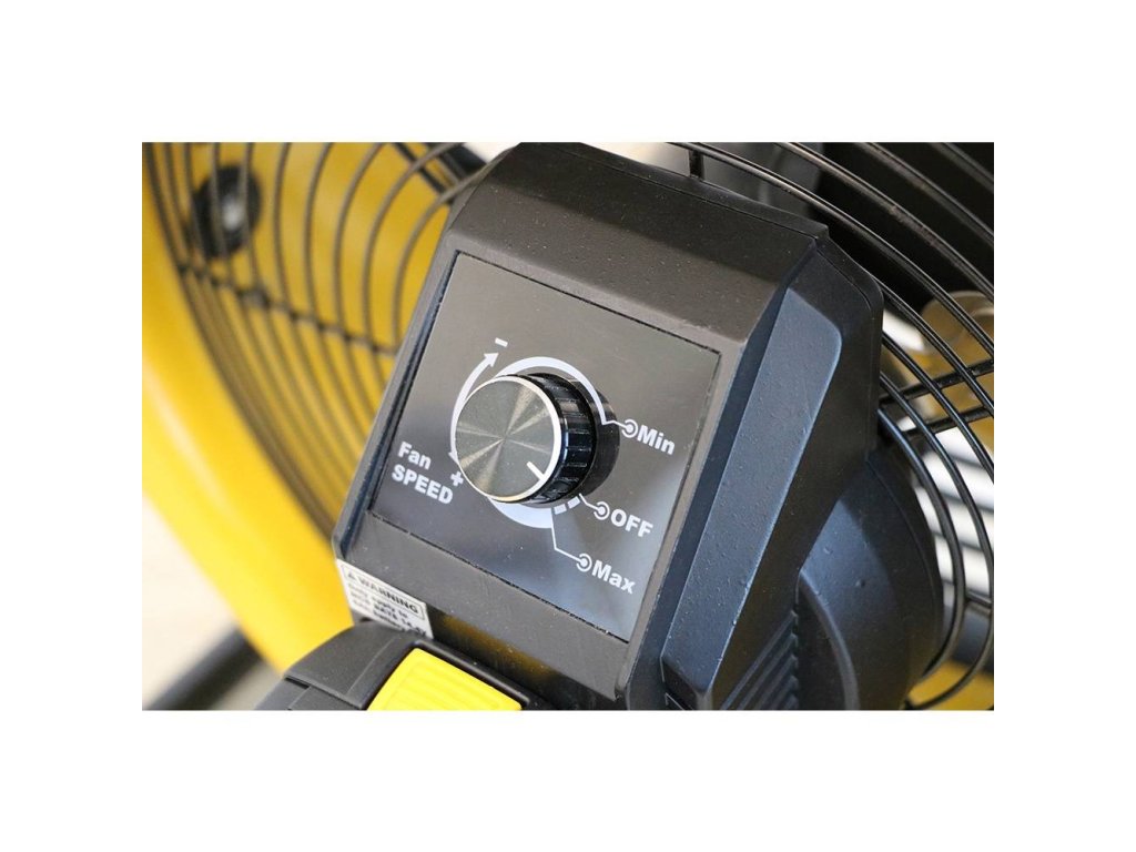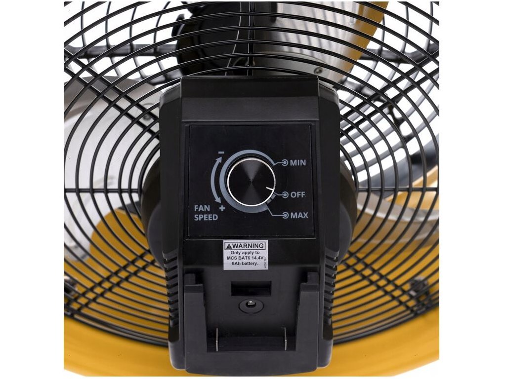 - Profesionální ventilátor je možno napájet standardně z el. sítě nebo v případě, že síť není k dispozici, tak pomocí baterie 14,4V/6Ah.