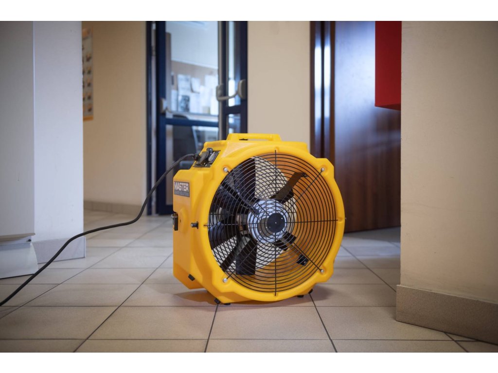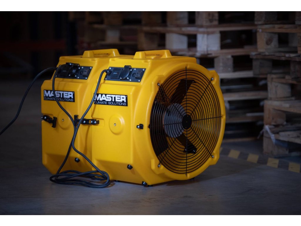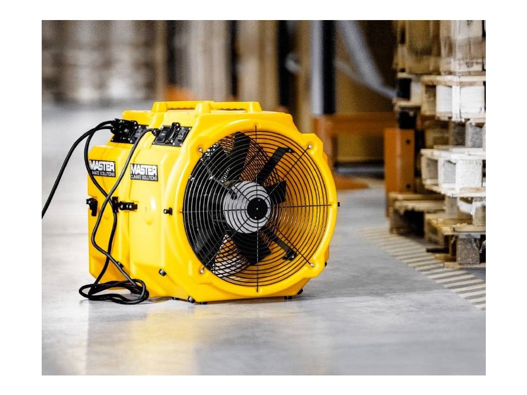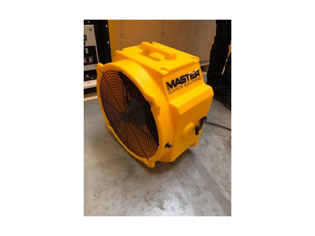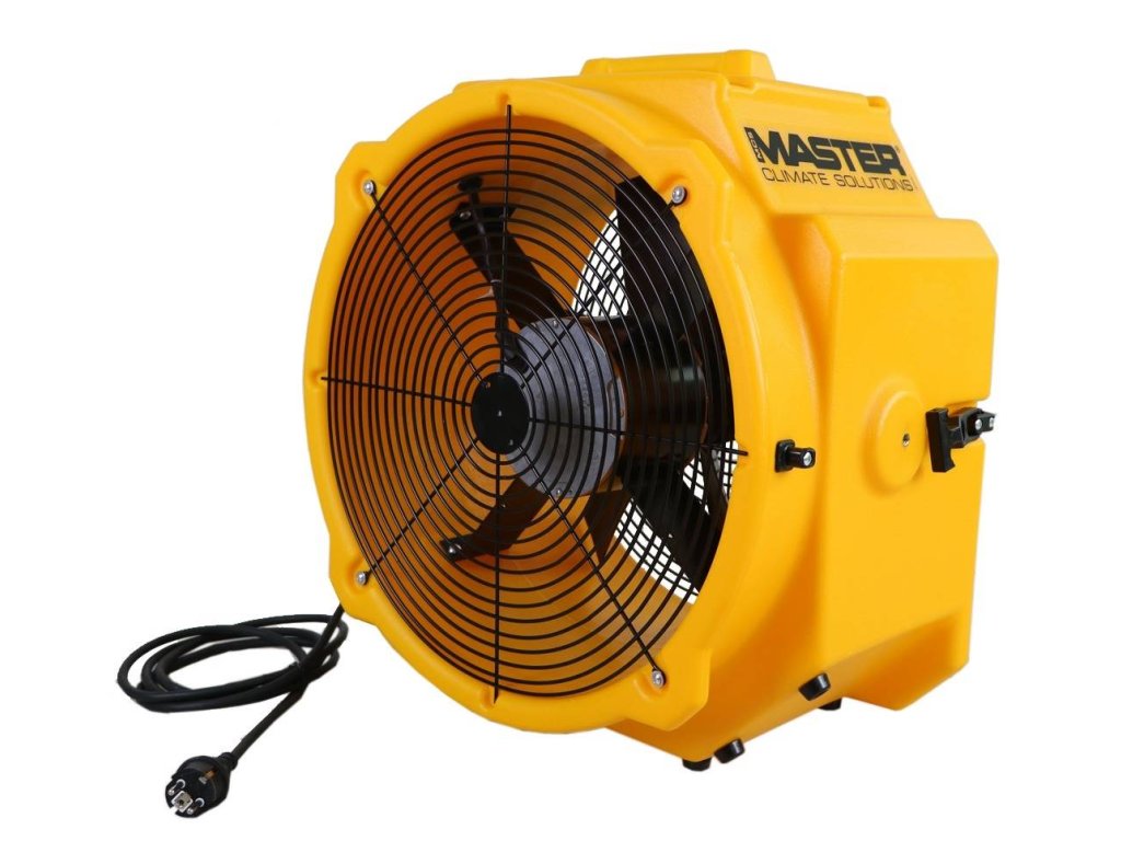 Mobilní axiální ventilátor Master DFX 20 s průtokem vzduchu 6450 m3/hod., vybaven zásuvkou 230V, 2 rychlosti a možností vzájemného propojení.