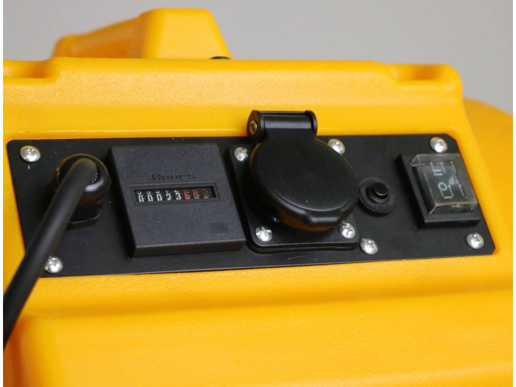 - Robustní ventilátor osazený v pevném plastovém krytu s madlem