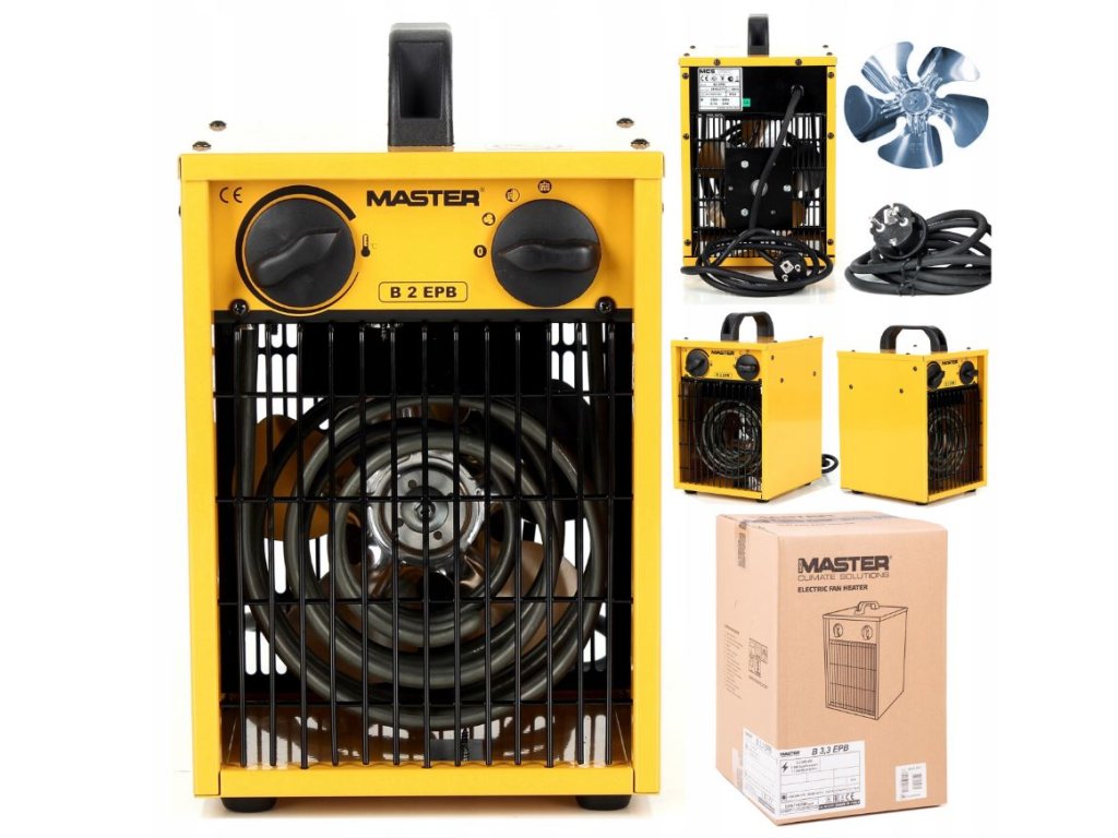 Elektrické topidlo s ventilátorem Master B 2 IT (EPB) je osvědčené topidlo s připojením na běžnou zásuvku 220 V. Topidlo má robustní konstrukci a dlouhou životnost. Topné prvky jsou z nerez oceli, motor s tepelnou ochranu.