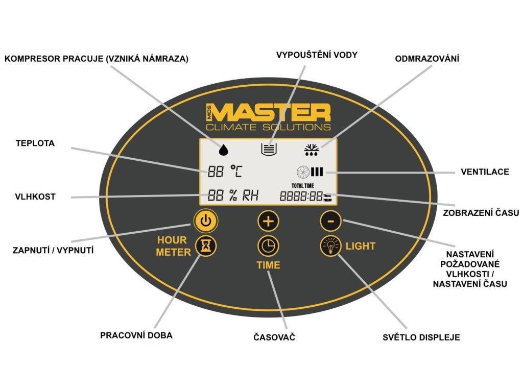 Technické parametry odvlhčovače Master DHP 55: