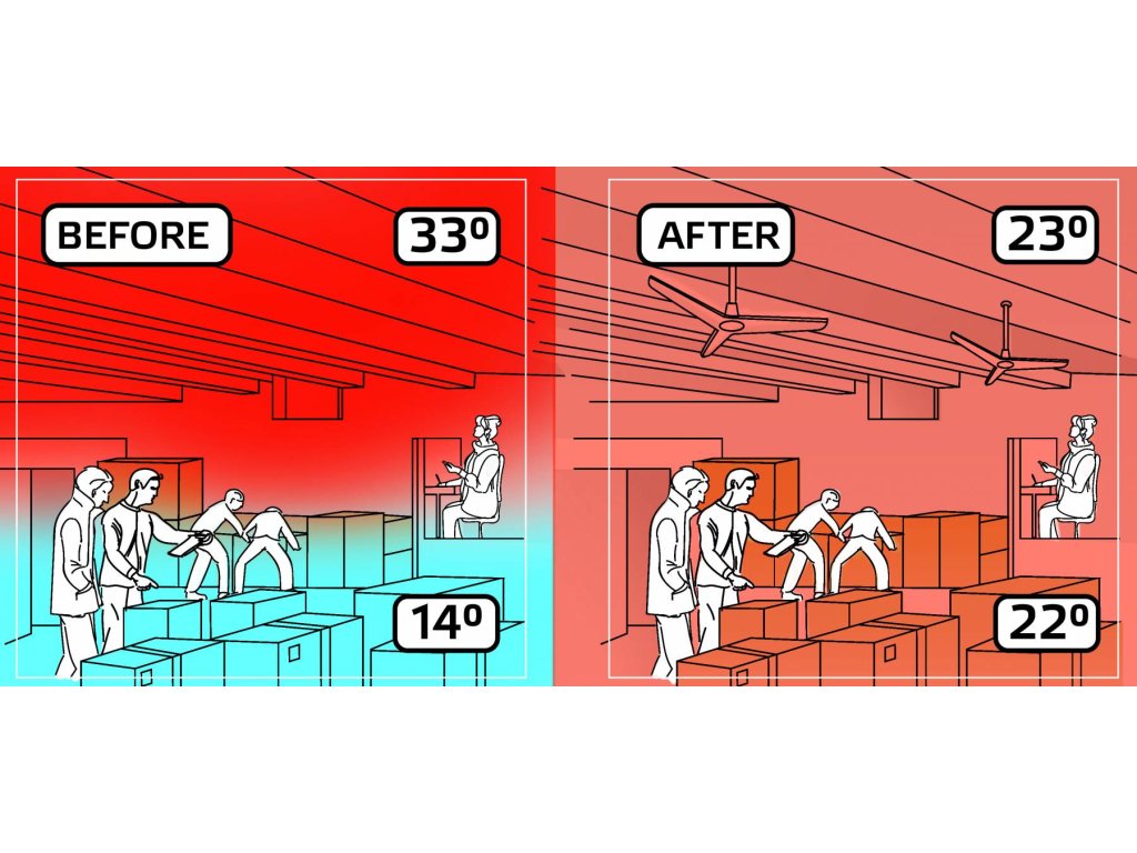 Podle přirozené vztlakové síly stoupá teplejší vzduch, což může ve vysokých místnostech (např. haly) způsobit rozdíl 10 °C až 20 °C v teplotě vzduchu mezi podlahou a stropem. Pro získání požadované teploty ve spodní části místnosti většina firem vytápí halu dlouhodobě a zbytečně, přestože teplota vzduchu v horní části již dávno dosahuje 28°C.